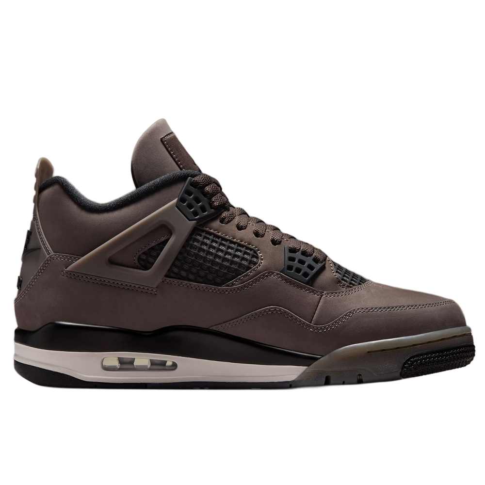 Cholewka wykonana jest z wysokiej jakości zamszu i materiałów tekstylnych w odcieniu Cave Stone, przypominającym piaskowo-szare skały, który nadaje butom elegancki i ponadczasowy wygląd. Całość uzupełniają kontrastujące detale w kolorze czarnym i “Moon Particle” oraz klasyczne elementy AJ4.