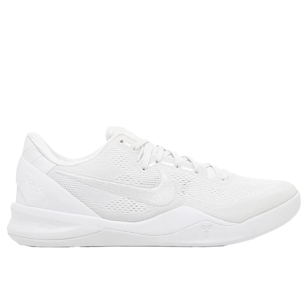 Nike Kobe 8 Protro Halo to buty koszykarskie, które upamiętniają zmarłego gwiazdora NBA, Kobe Bryanta. W projekcie postawiono na absolutną prostotę i elegancki minimalizm monochromatycznej bieli. Cholewka modelu wykonano z materiału Engineered Mesh, który zapewnia lekkość, oddychalność i dopasowanie do stopy. Na języku umiejscowiono haftowane logo Swoosh i Mamba, symbolizujące przynależność Kobe do marki Nike i jego ikoniczne przezwisko “Black Mamba”.